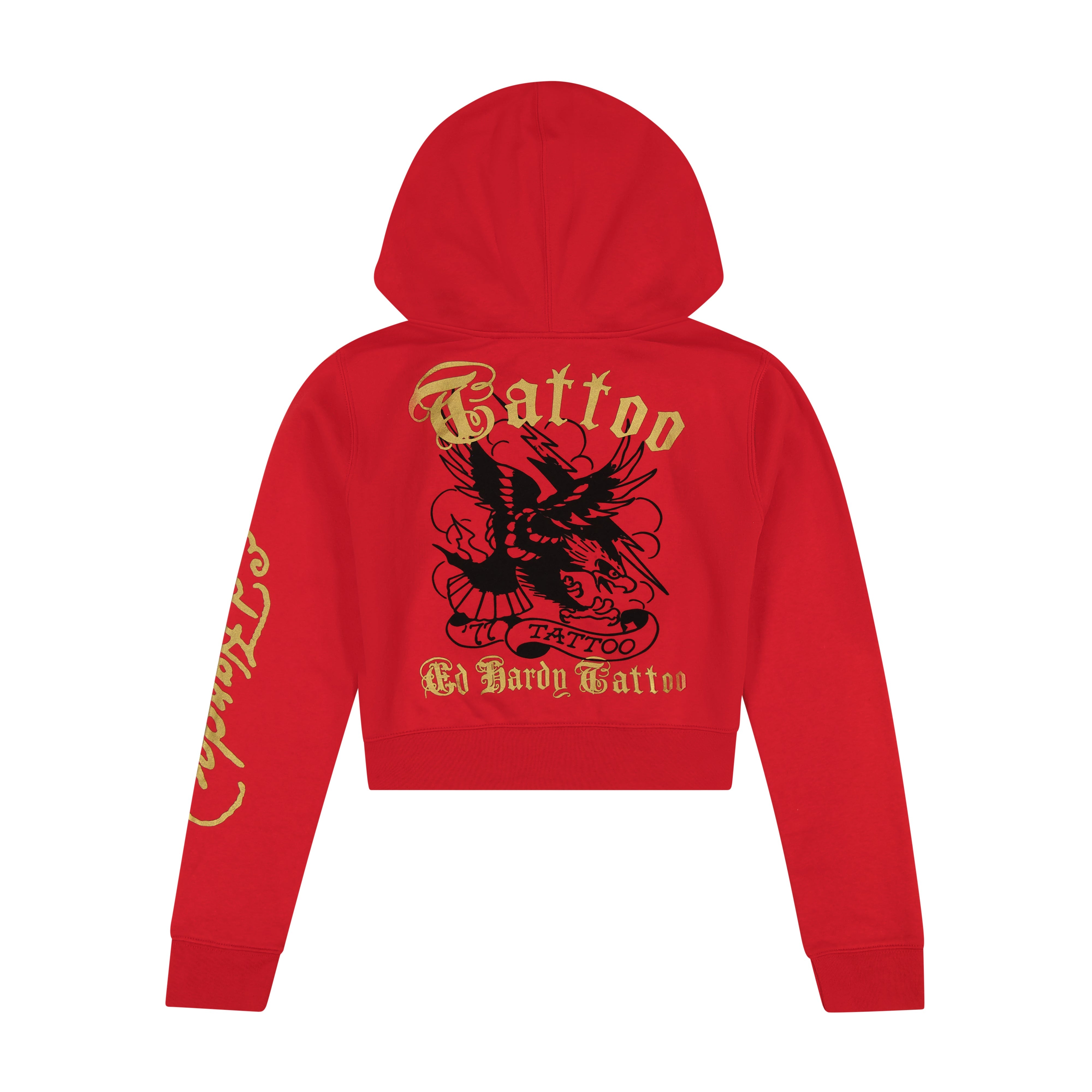 Ed Hardy’s fleece sets add a modern twist to the styles that reigned in the early 2000’s. This cherry red sweatshirt features a cropped fit complete with multiple signature graphics and a gold logo.
