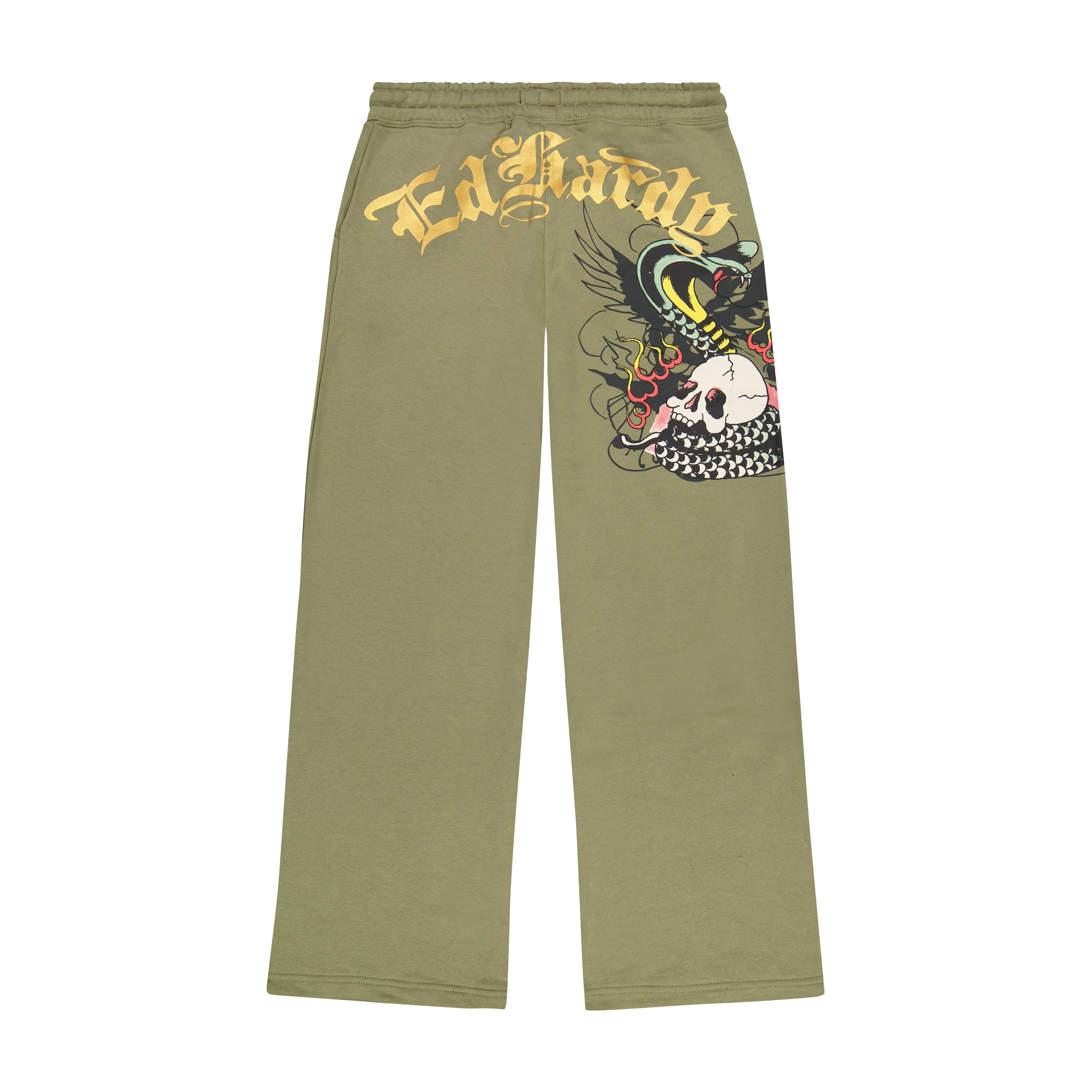 Ed Hardy’s fleece sets add a modern twist to the styles that reigned in the early 2000’s . These wide leg sweatpants are complete with a signature Cobra Flame graphic.