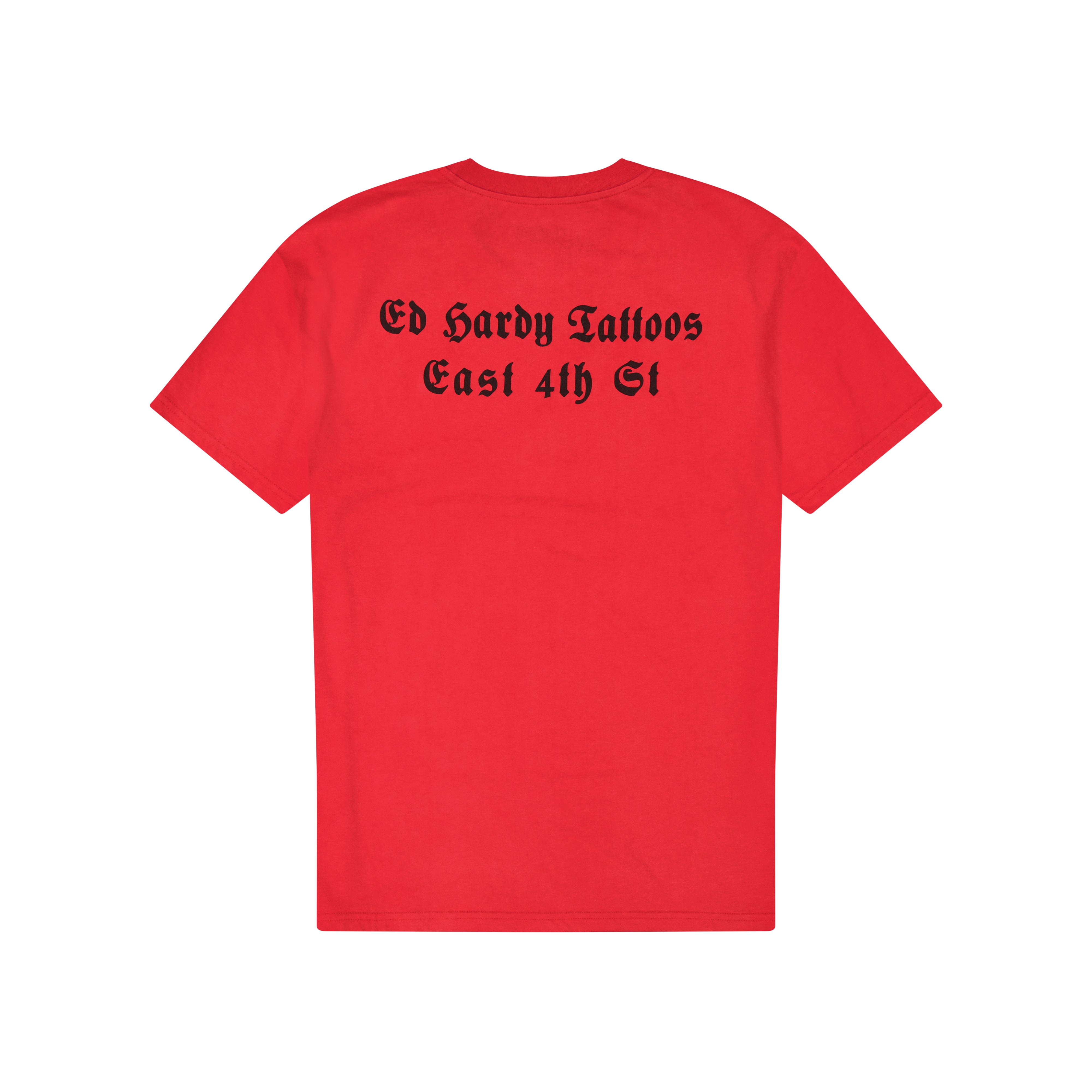This boxy tee is cut from a vintage fade cotton for the perfect retro, oversized feel. Features layered archival Ed Hardy graphics and rhinestones. Complete with a signature Old English Ed Hardy logo.