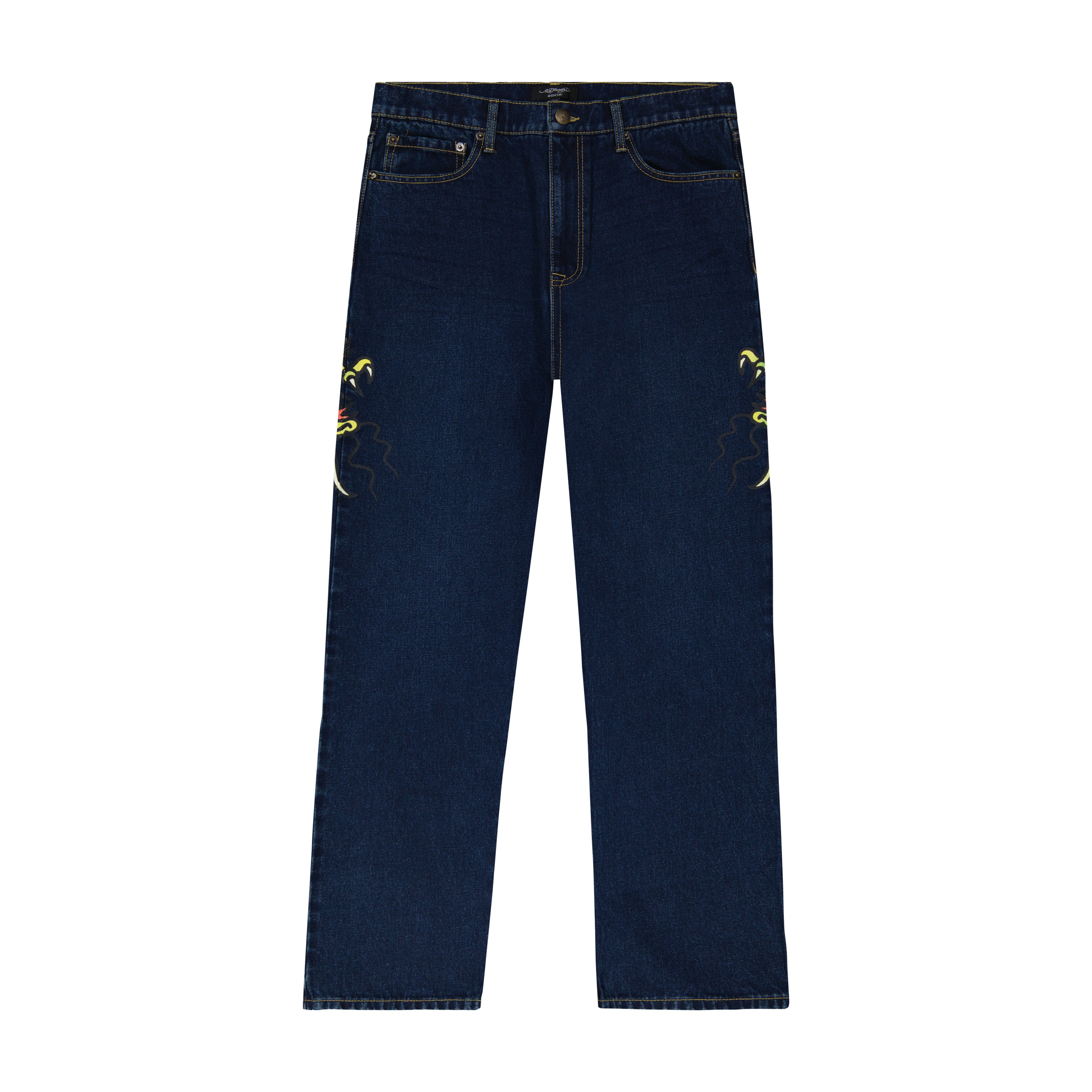 Baggy jeans cut from a black denim. Features archival Dragon Skull artwork and complete with a signature Ed Hardy logo on the back.
