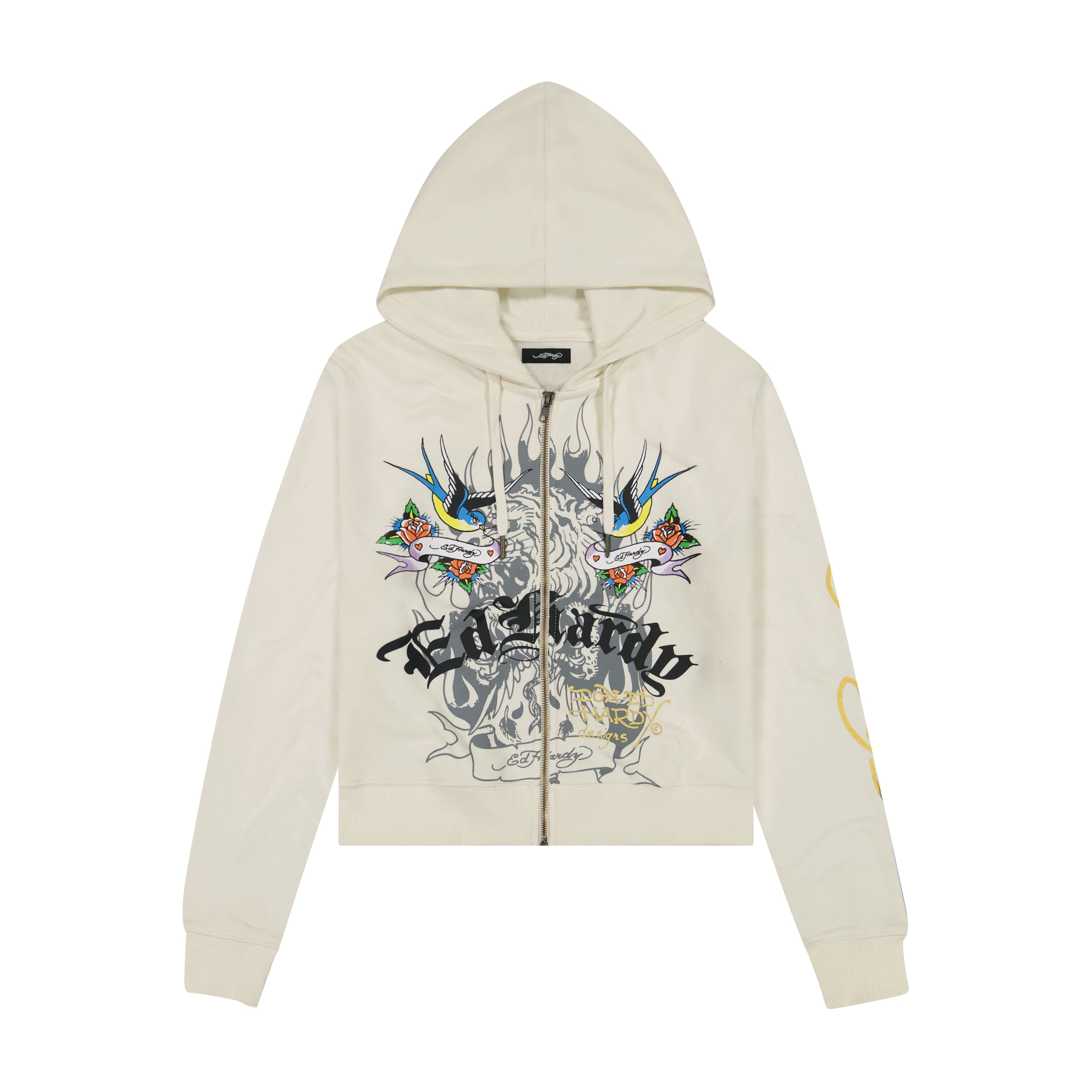 Ed Hardy’s fleece sets add a modern twist to the styles that reigned in the early 2000’s. This relaxed fit sweatshirt features a cropped fit complete with an archival LKS Skull graphic.