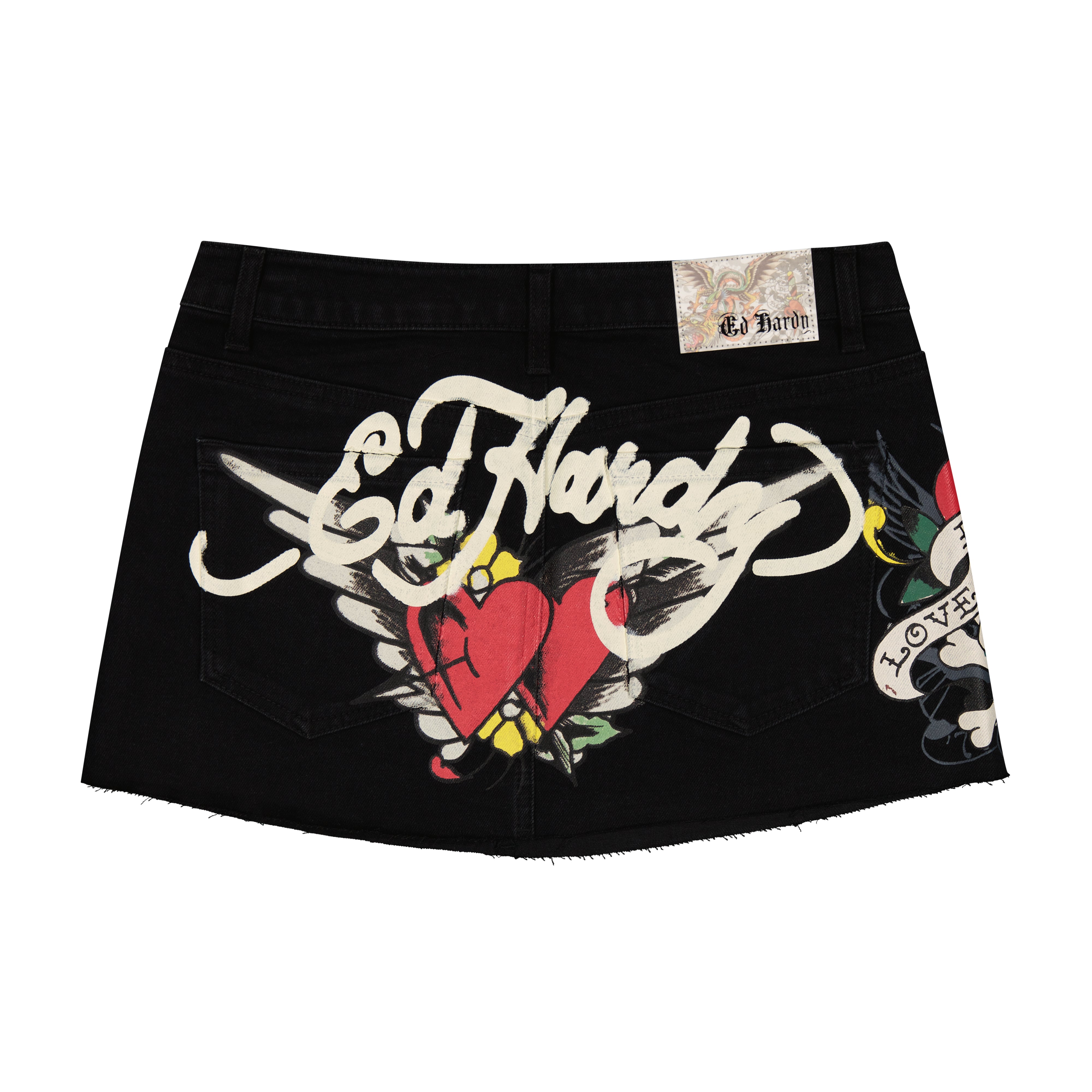 Embrace the Y2K revival with our vintage inspired denim mini skirts. Complete with archival Ed Hardy artwork and iconic logo.