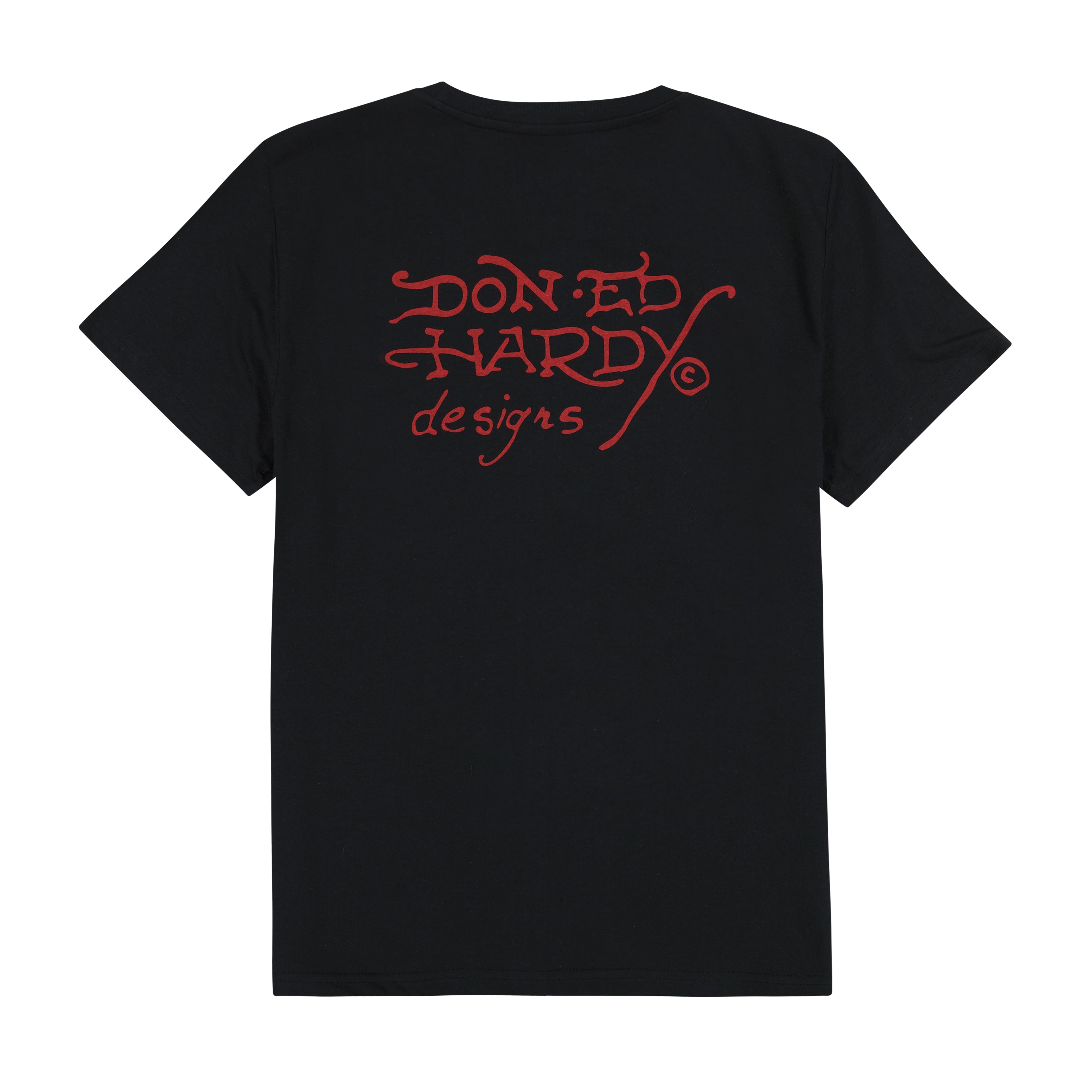 This black tee is constructed from quality cotton to ensure comfort. Complete with an iconic Ed Hardy “love dies hard” skull graphic layered over a tiger head.