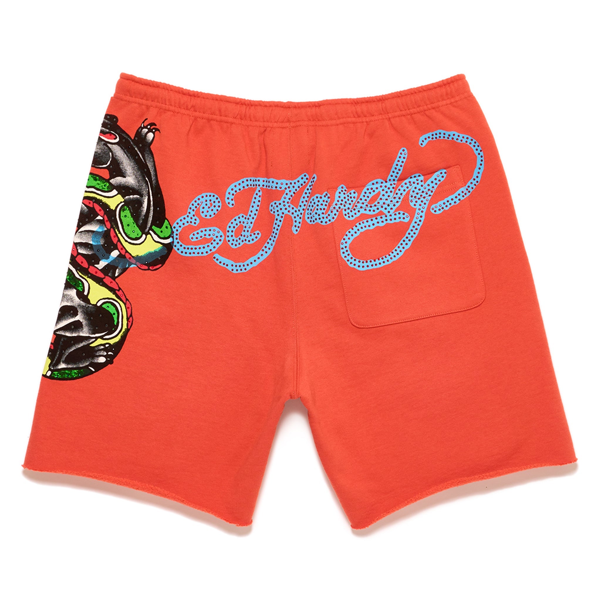 This luxury short is crafted with a heavy weight 100% cotton. Treated with a garment wash for the ultimate softness. Featuring Ed Hardy's iconic "Panther Snake" with signature rhinestone embellishments.