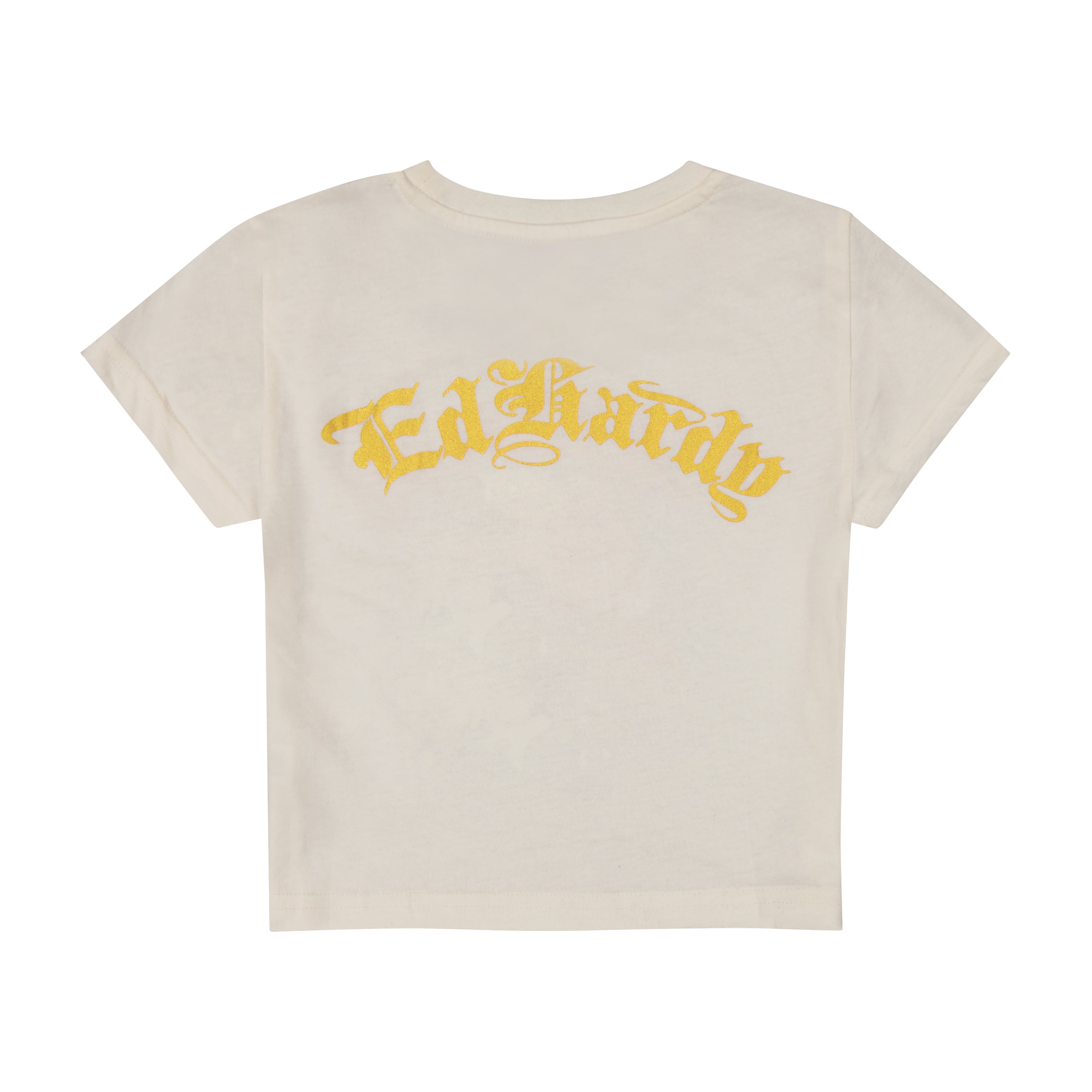 Our classic baby tee silhouette featuring archival Tiger Crown graphic and Ed Hardy logos. Constructed from a soft cotton blend and complete with rhinestones.