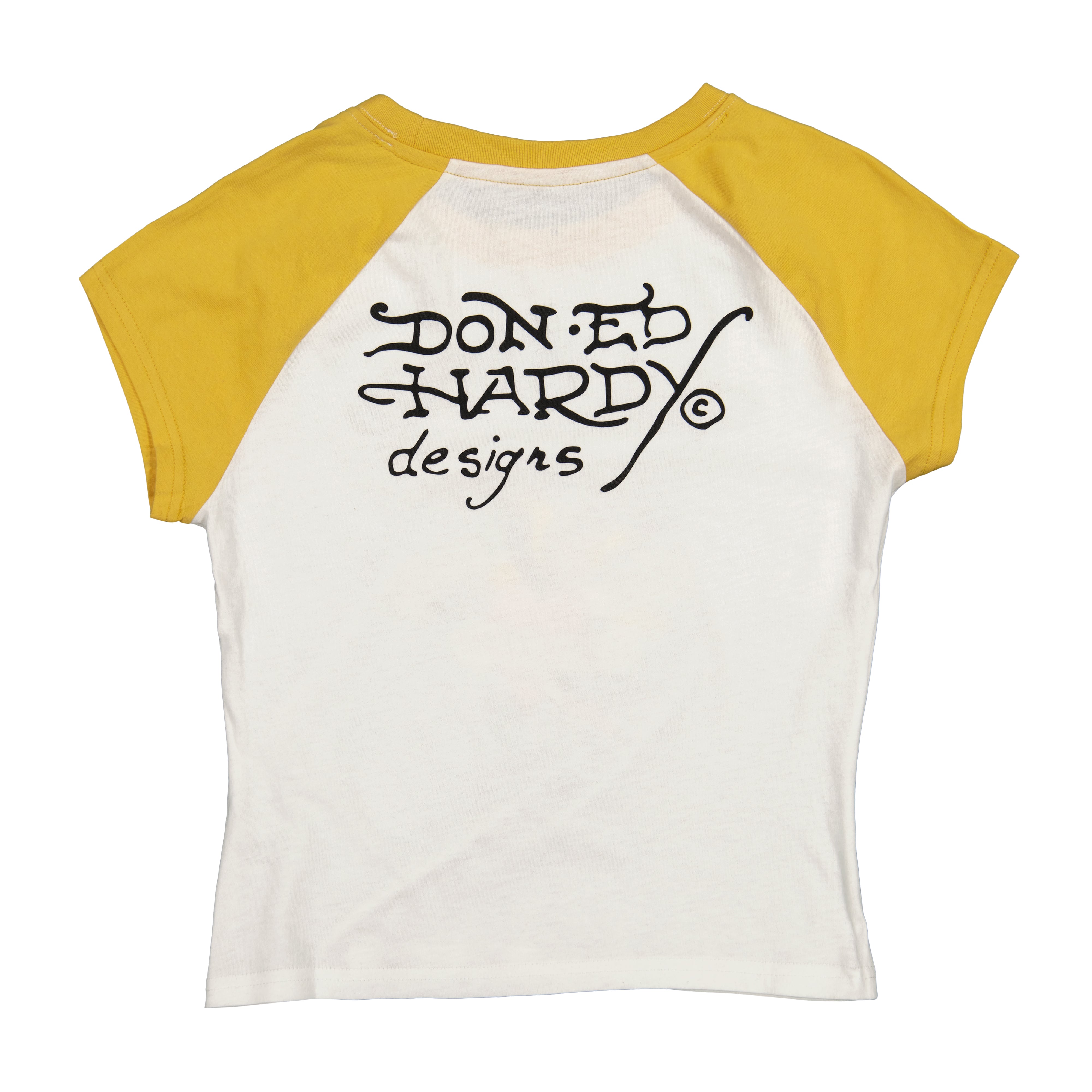 Cap sleeve raglan fitted tee cropped at the waist. Features an archival true eagle graphic, and complete with signature Ed Hardy logos on front and back.